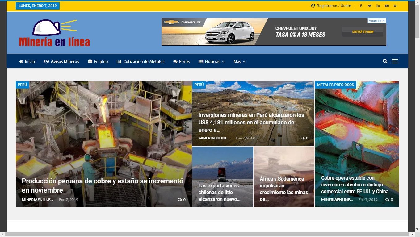 Este completo portal web sobre noticias mineras de Latinoamérica posee secciones muy interesantes y de consulta permanente para los visitantes como: cotización de los metales, búsqueda de empleo, foros e información educativa. A través de los foros se pueden realizar consultas sobre las diferentes oportunidades laborales en distintos proyectos mineros ubicados en la parte sur del continente americano.