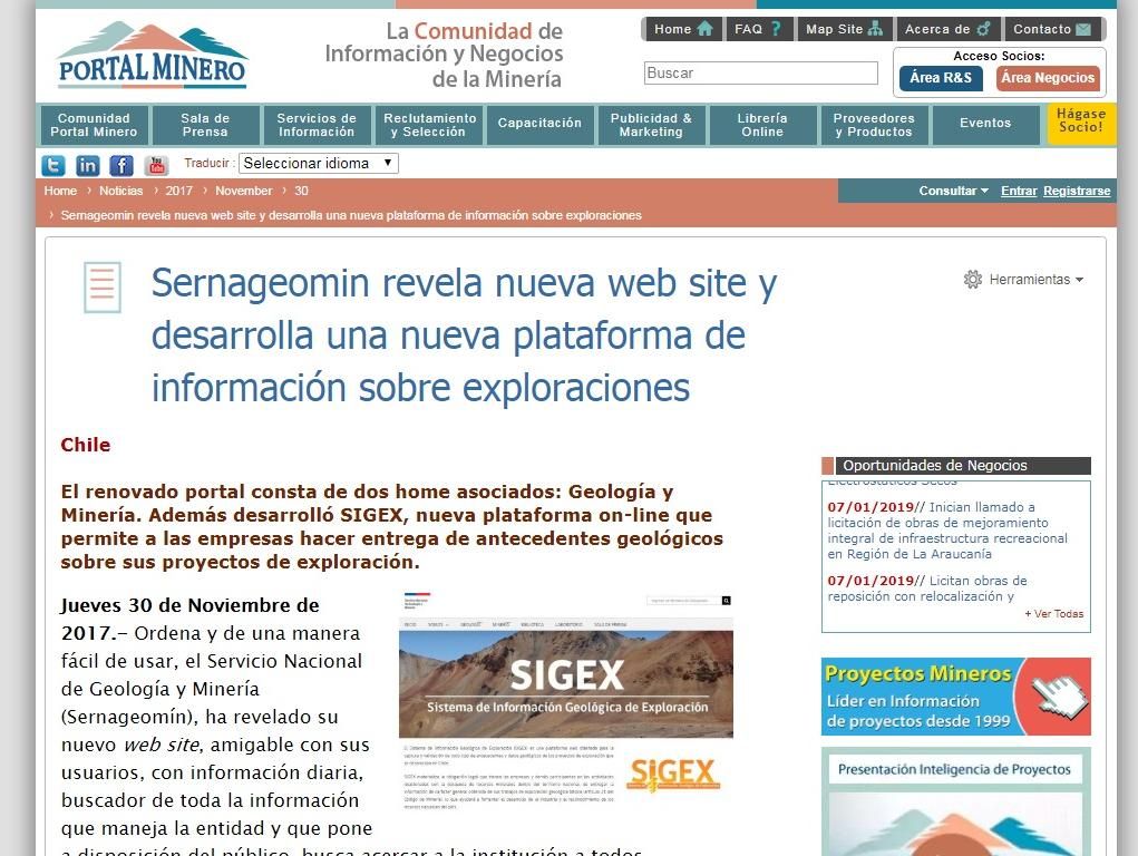 Este espacio on-line le permite a cualquier interesado integrarse a una de las mayores redes de usuarios del sector minero latinoamericano. Con un simple registro se puede acceder a un mundo de información en materia industrial, y sobre todo de negocios extractivos. Un sitio fundamental para los que buscan oportunidades económicas y de inversión dentro de países como Chile, Argentina, Perú, Brasil y Colombia.