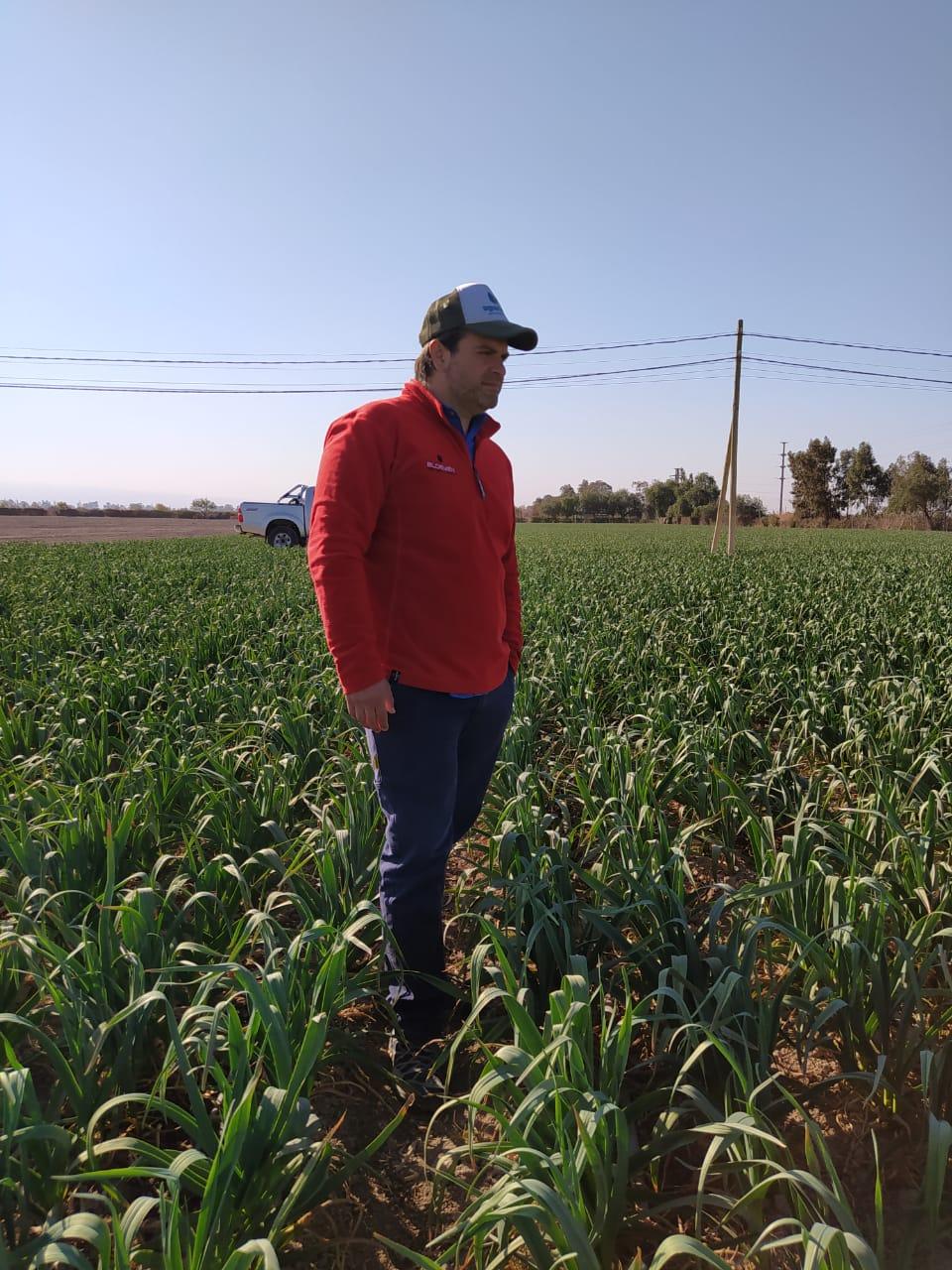 El productor Federico Gómez, en la finca, expresó +uso el fol en ajos como materia orgánica de base, como un reemplazo del guano clásico.+