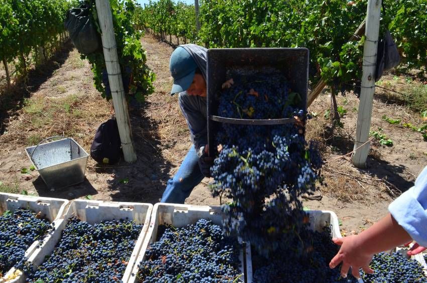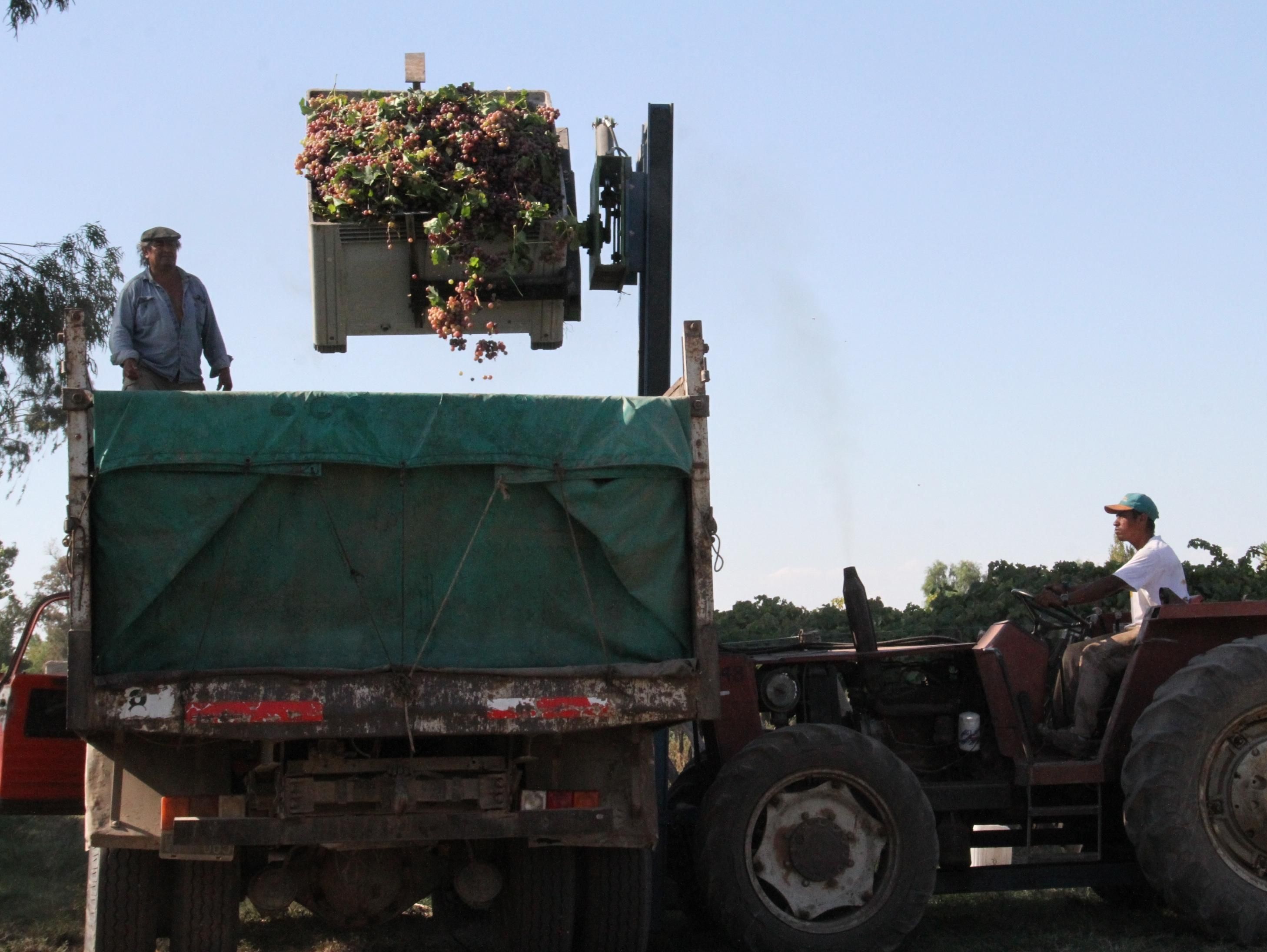b) Los productores cosechan en fechas similares, generándose competencia entre ellos para conseguir trabajadores (lo que también aumenta el precio del jornal) y largas filas de camiones en las bodegas provocando deterioro de la calidad de la uva.