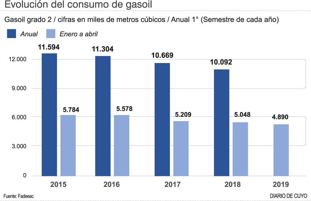 Para Fadeeac, la caída de los volúmenes transportados en 2018 y 2019 en el marco del descenso de la actividad económica en el país se está viendo reflejada en una disminución del consumo de gasoil y un marcado declive de la inversión en Material Rodante