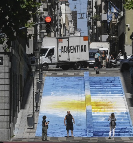 En un rinconcito de Capital Federal, más precisamente en Lavalle entre Leandro N. Alem y 25 de Mayo, a pocos metros de la Casa Rosada, quedó inmortalizada la euforia de absolutamente todos los argentinos al ganar Qatar 2022. La obra dedicada a la Scaloneta se inauguró el pasado 9 de enero y es un a instalación del reconocido artista visual Alfredo Segatori. Esta iniciativa que puso color albiceleste a más de 400 metros cuadrados está enmarcada en el Programa Red Microcentro, de Revitalización Cultural del Ministerio de Cultura de la Ciudad de Buenos Aires.