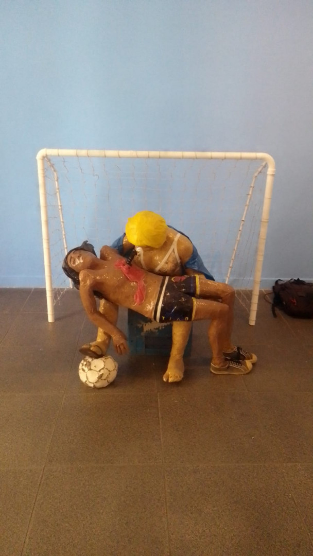 Preguntas que van desde ¿cómo se vincula el fútbol con las artes visuales?, ¿cómo opera ese cruce de lo popular desde la tragedia, lo sagrado y la exacerbación de las pasiones?, ¿cuál es la relación entre la imagen del ídolo futbolístico y la construcción de la celebridad, la fama y el estrellato?, ¿cuánto soportan los cuerpos de los deportistas, qué expresan, qué cuentan, qué reflejan, qué ocultan?, ¿cómo se manifiesta la mirada pública sobre ellos?, ¿qué imaginería se reproduce a su alrededor? se responden en esta muestra por medio de fotografías, instalaciones, pinturas, esculturas, site specific y videos de más de cuarenta artistas. La exposición se propone abrir estos interrogantes en una discusión que tiene como eje las contradicciones del deporte más amado por los argentinos, en el que convergen los sentimientos populares, los capitales económicos y las identificaciones culturales.