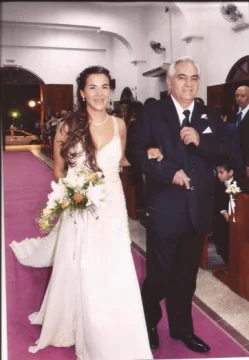 La novia lució un vestido realizado por Ana Campodónico y de luna de miel, se fueron en automóvil a recorrer el sur argentino y chileno.