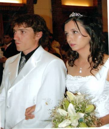 Poco más de una década de novios les tomó llegar finalmente al altar. Andrea Ester Grimalt (25), está a punto de culminar su carrera en Ciencias Económicas en la Nacional. Miguel Ángel Hensel (27), es maquinista en Veladero. Se casaron en la iglesia de San Antonio de Padua, en Media Agua y la novia fue precedida en su ingreso, por un cortejo de sobrinos: Lautaro Grimalt (5), Aníbal Hensel (4), Emilia (4) y Ángela Cortez (4). Fueron padrinos por la novia, su padre y su hermana, Pedro Grimalt y María Noelia Grimalt. Por el novio, su hermana y su tío, Carina Hensel y Eduardo Hensel. Testigos, Cecilia Moll y Sergio Ganga. Para el civil, Fabián Hensel y Vanina Quintero.