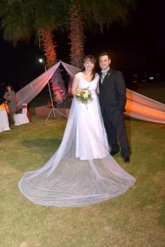 La novia lució un vestido realizado por Isabel Pino, con el peinado y maquillaje de Estela Figueroa y staff. De luna de miel, partieron hacia San Martín de los Andes y Bariloche.