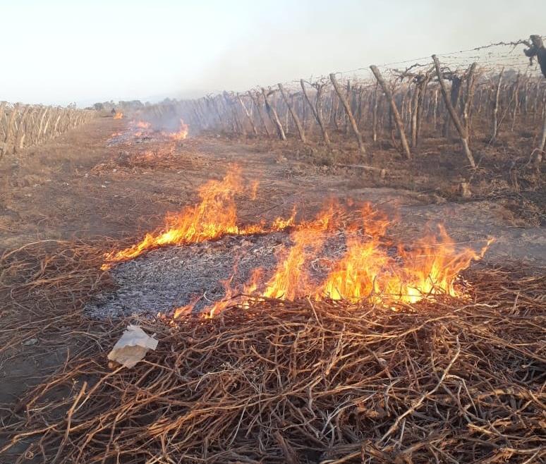 - Quemar restos de poda (sarmientos, madera, etc, no goma), haciendo una cortina de fuego en el sector más frío es útil. Nunca queme cubiertas: sólo aumentan el riesgo porque prolongan la duración. Y contaminan el ambiente.