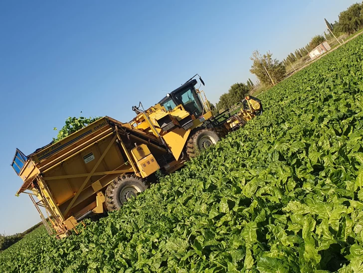 En propiedades rurales de Médano de Oro y varias localidades de Pocito (como Carpintería y Villa Aberastain), en estos momentos se realizan cosechas mecánicas de verduras de hoja, como la acelga, espinaca y otras. También de manera manual se realiza la recolección. En la foto, un cultivo para industria. Existen otros para consumo.