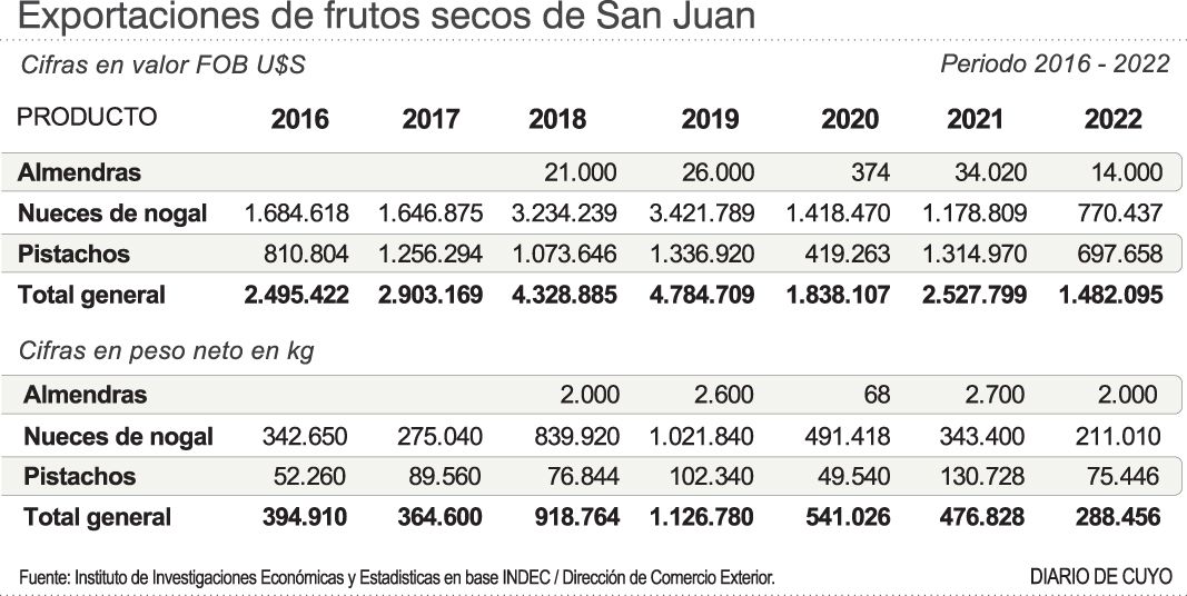 El récord en ventas externas de esta fruta seca fue en el 2019,generando divisas por U$S 5,6 millones a cambio de 933 toneladas, según los primeros informes de la embajada argentina en Brasil.