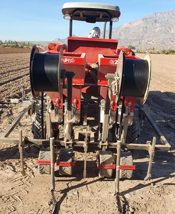 Luego de ver y controlar la siembra, a la que asistimos, destacó "tiene la formadora, también dos tolvas donde va la semilla de ajo, las caídas y le agregamos un sistema para poder colocar al mismo tiempo la cinta de riego por goteo (que no venía en la versión original)".