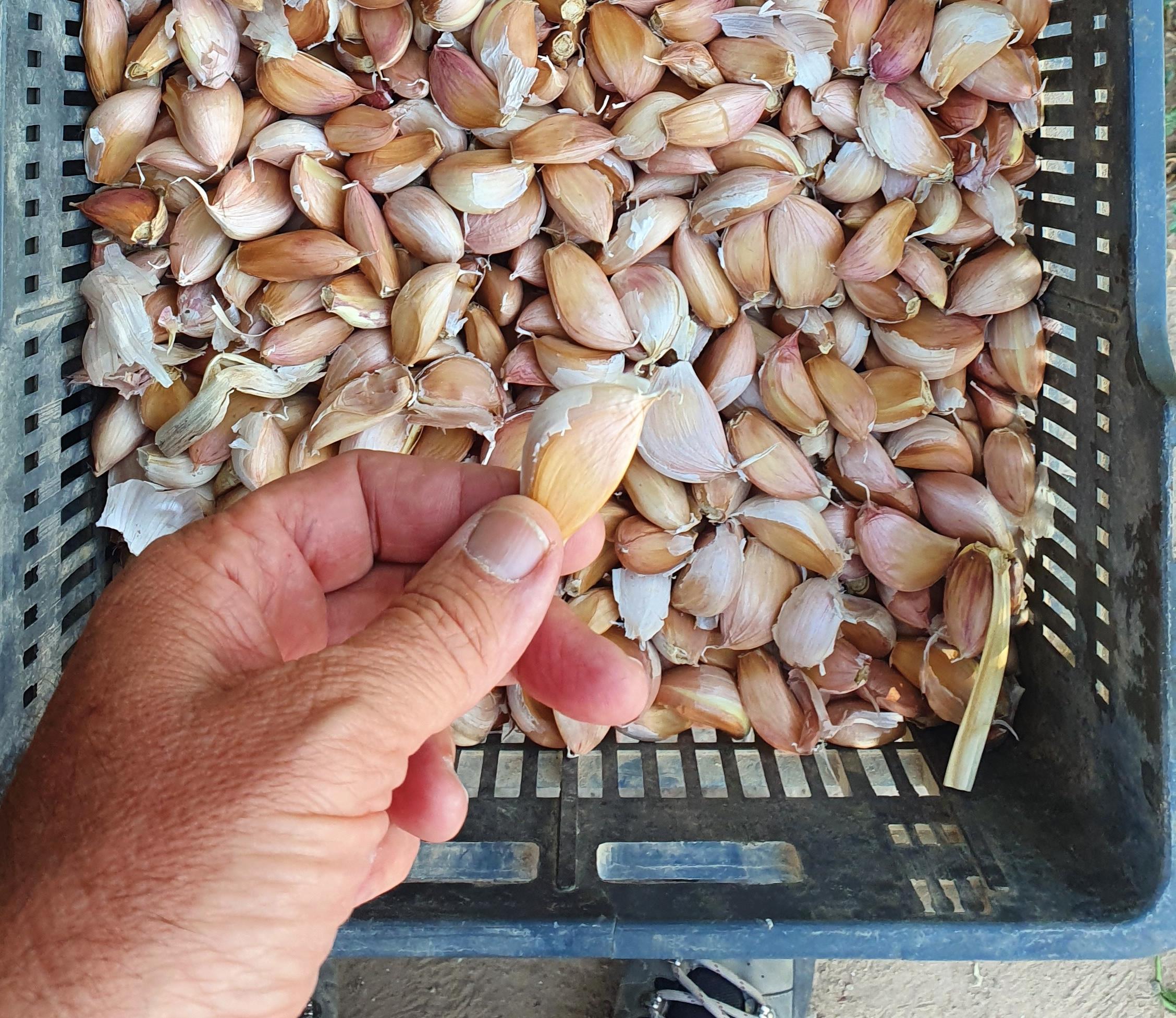 Le consultamos la densidad y dijo que por metro están usando 12 ajos (dientes) y en la hectárea se gastan más o menos 1.000 kilos de semilla.