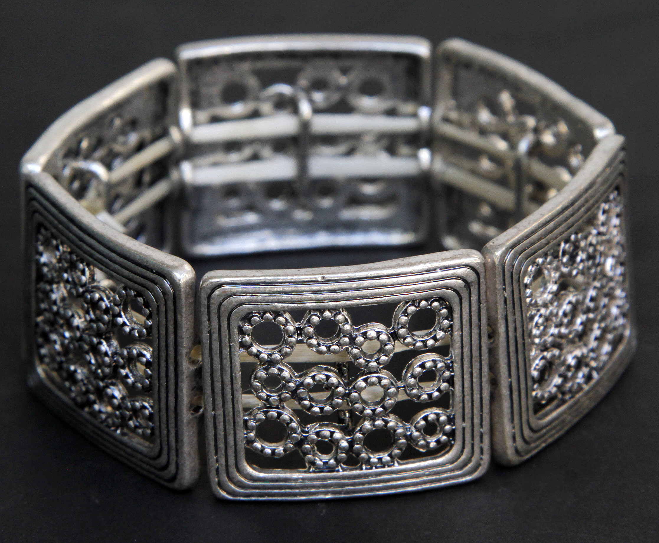 PULSERA ELASTIZADA DE METAL EN CUADRADOS ($230).