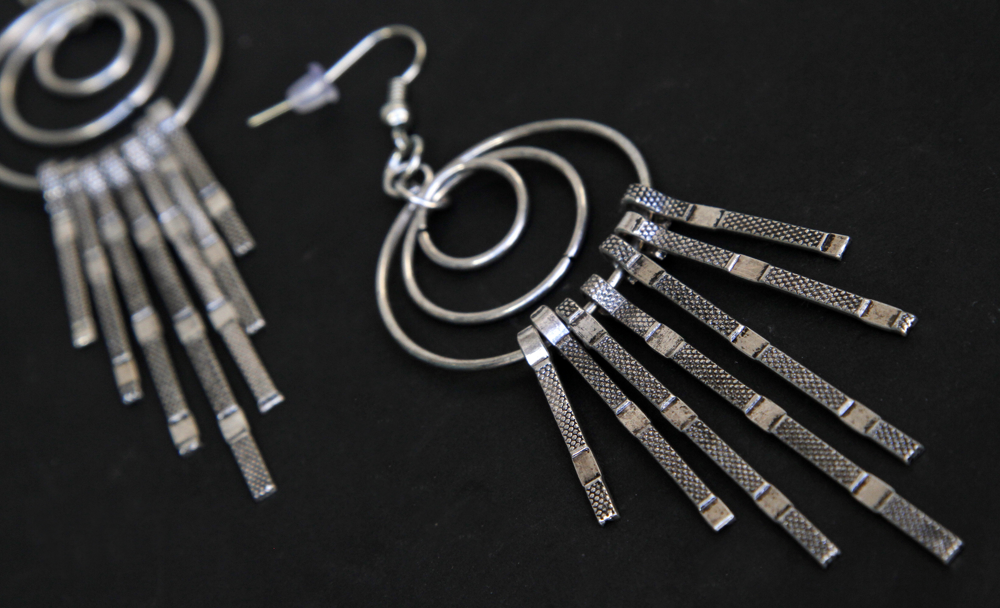 AROS CIRCULARES CON LÁMINAS COLGANTES ($180).