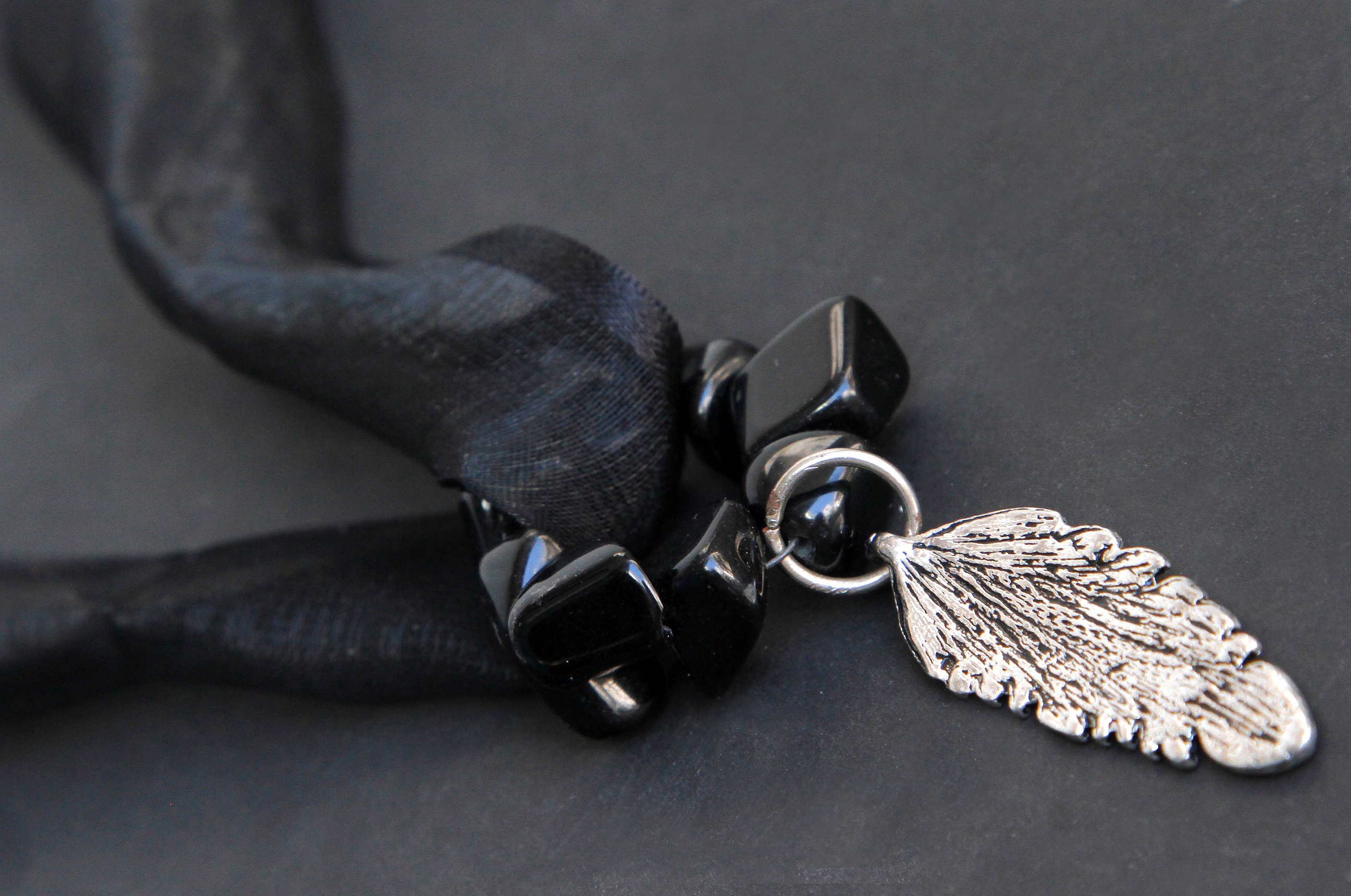 CHOKER DE MUSELINA Y SEDA CON COLGANTE DE PIEDRAS Y METAL ($250).