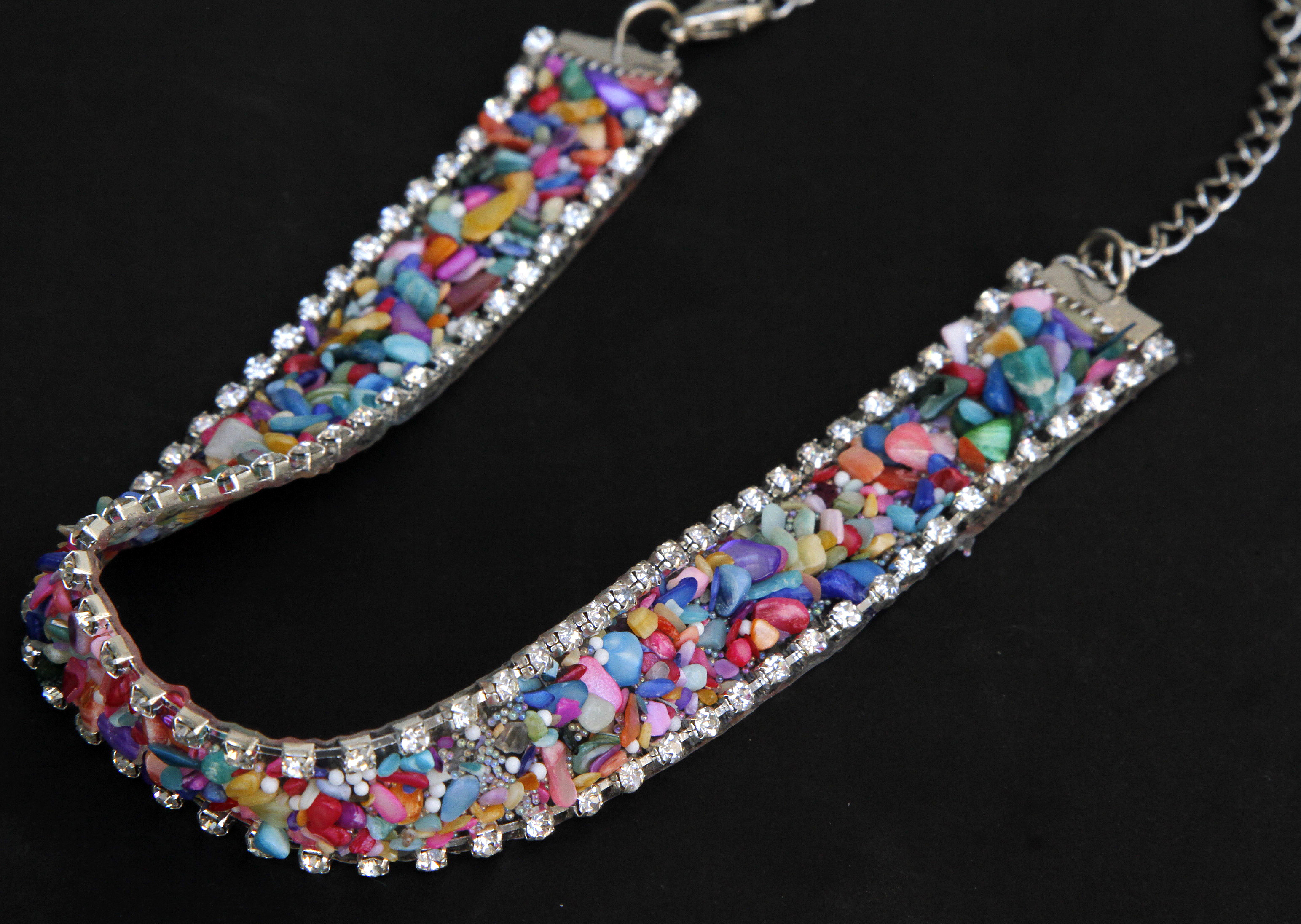 CHOKER DE STRASS CON PIEDRAS NATURALES ($290).