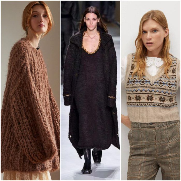 El tejido en punto grueso y holgado invadirá los sweaters y cárdigan. Los tejidos de moda son enormes, de gran tamaño, cuello enorme y mangas largas. Los sweaters con cuello alto o tortuga seguirán de moda, así como las mangas voluminosas.