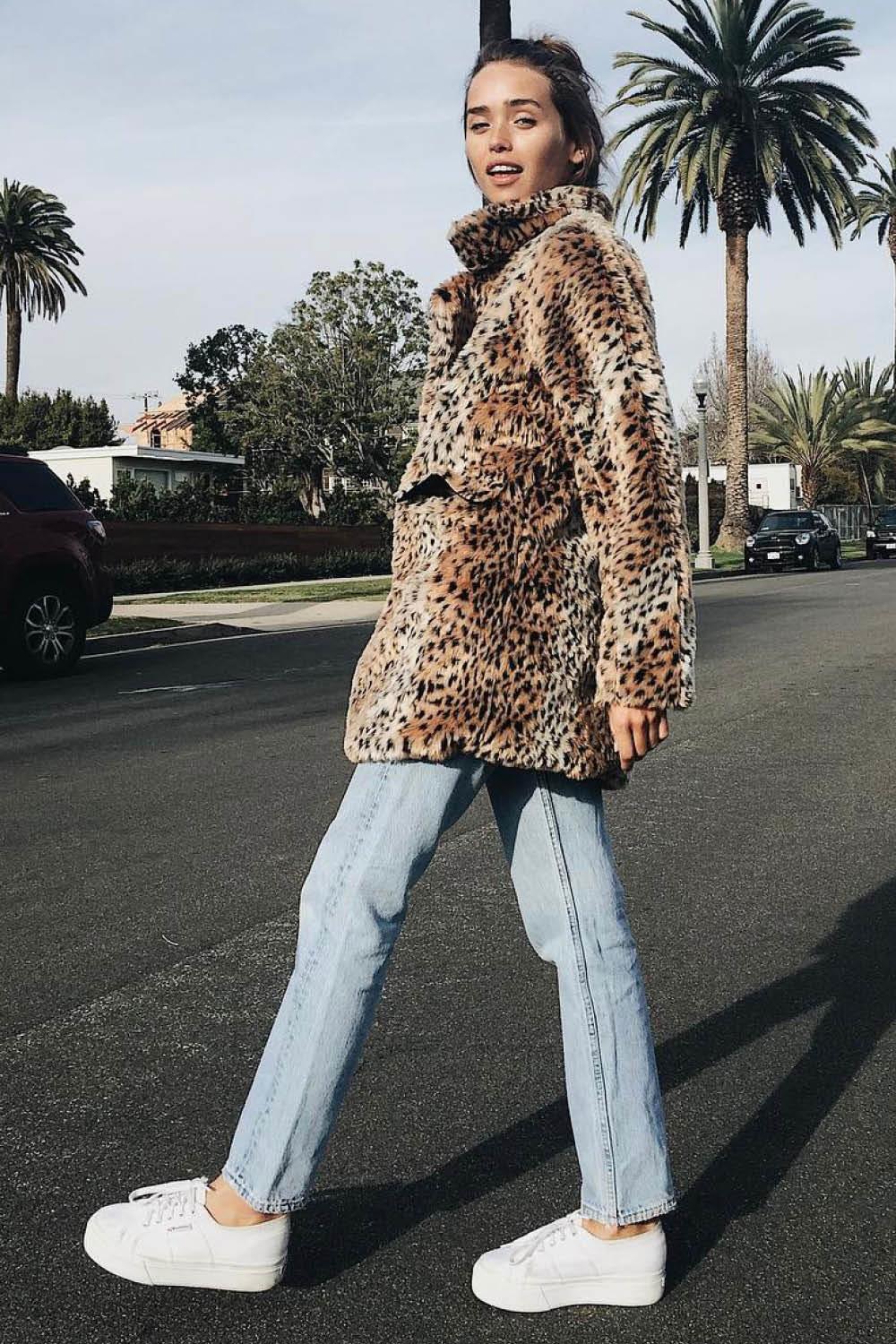 ¿No tienes miedo de experimentar con la moda? Entonces apuesta por un abrigo de pelo con el estampado más fashion de la temporada. Sí, el print de leopardo sigue presente en nuestro armario. Combínalo con unos mom jeans.