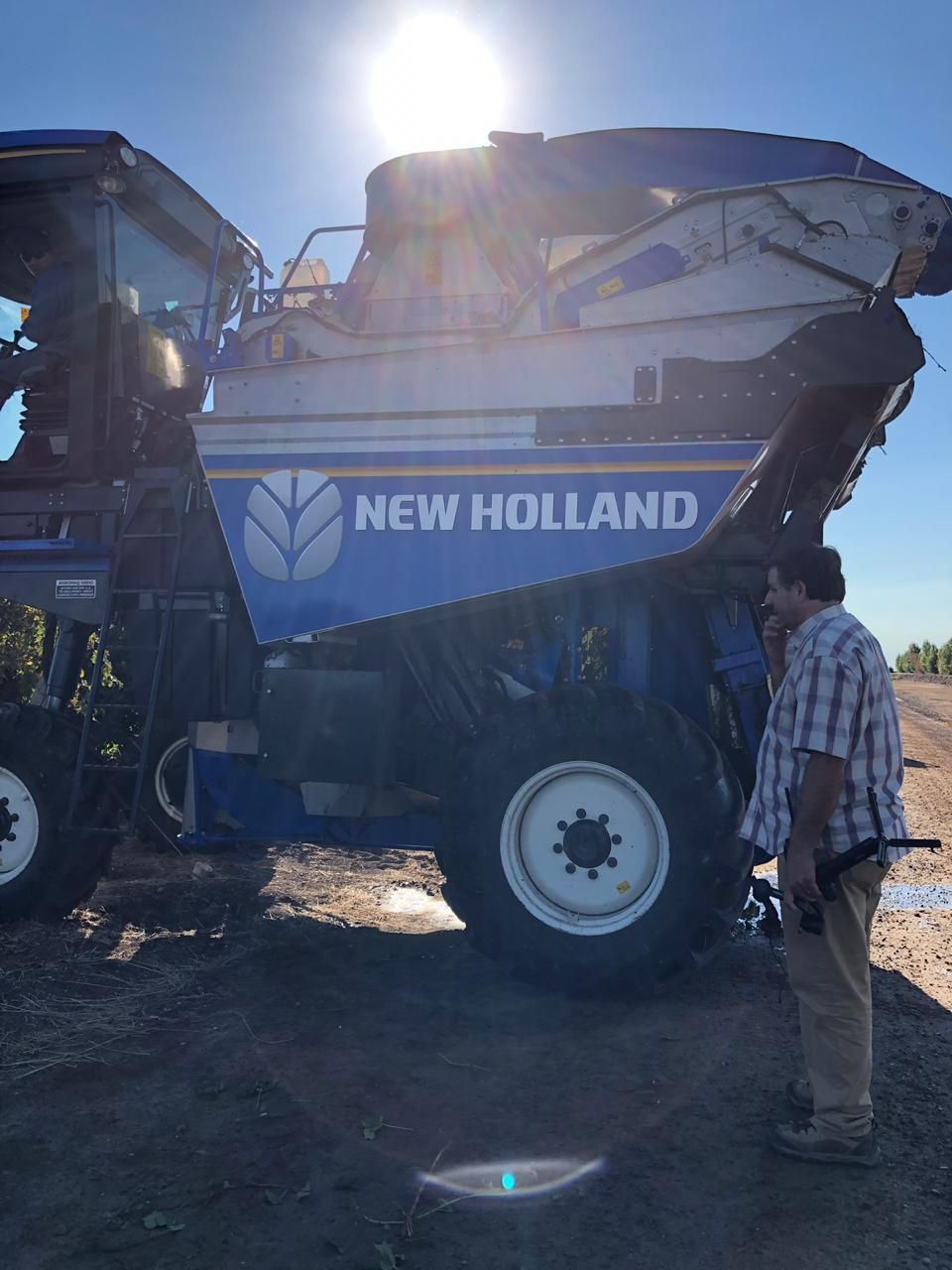 Tenemos 6 máquinas Colossus propias, y 3 vendimiadoras, de vid y olivos. Como novedad, hemos incorporado una nueva cosechadora, que llegó en la campaña 2019, y es la New Holland 9090 XH, se utiliza para cosechar vid y olivos, y cuesta 385.000 dólares, es toda electrónica".