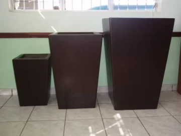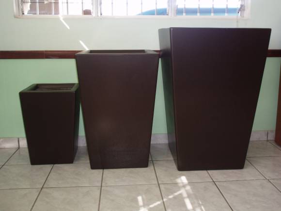 Para exterior: Si las plantas están a la sombra, podemos elegir cualquier material. La intemperie va deteriorando los materiales plásticos y resinosos lentamente, por lo tanto es un dato a tener en cuenta a la hora de elegir para el exterior. Las macetas de cemento, que vienen pintadas en varios colores, se aconsejan para arbustos y plantas que a pesar de estar en galerías o patios soportan varias horas de sol. Otra opción son las de madera, que dan calidez, las de terracota esmaltada, que son señoriales, y la simpleza de la fibra de vidrio que se adaptan a todos los ambientes.