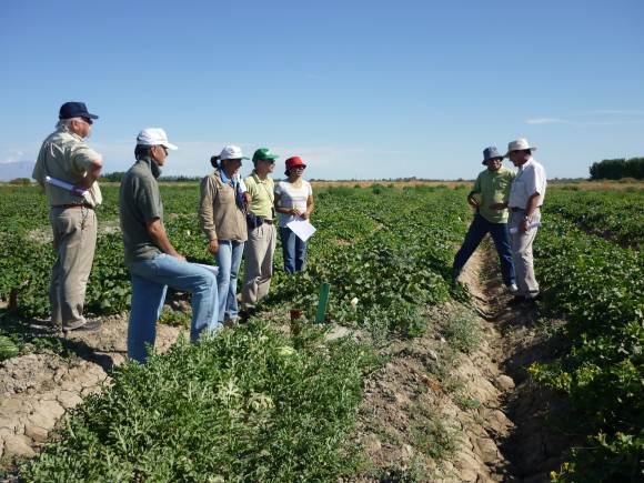 El pasado martes 28 de Diciembre se llevó cabo una gira técnica (foto) de extensionistas e investigadores del Proyecto Regional Hortícola del Instituto Nacional de Tecnología Agropecuaria. En esta oportunidad recorrieron también cultivos de Colonia Fiscal. El departamento elegido para los ensayos es considerado con condiciones agroecológicas sin igual para el cultivo del melón. Informes: 0264-4941026