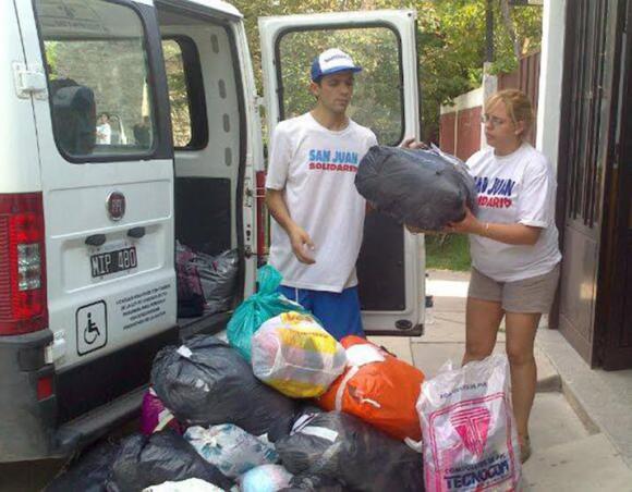 colaborar y lo hacía llevando donaciones a diferentes entidades, hasta que se cuestionó porque no lo hacía él mismo. Manifestó la propuesta a unos amigos que también tomaron la posta y dieron el puntapié inicial de San Juan Solidario. "El nombre surgió porque sabemos que en toda la provincia hay gente con necesidades de recibir una mano que ayude y gente que quiere hacerlo y no sabe como canalizarlo. No sólo con comida o ropa sino también con afecto, con juegos, libros, entretenimientos que muchas veces no les llega de otro modo", explica este joven de 29 años que logró reunir 50 voluntarios para colaborar en cada campaña.