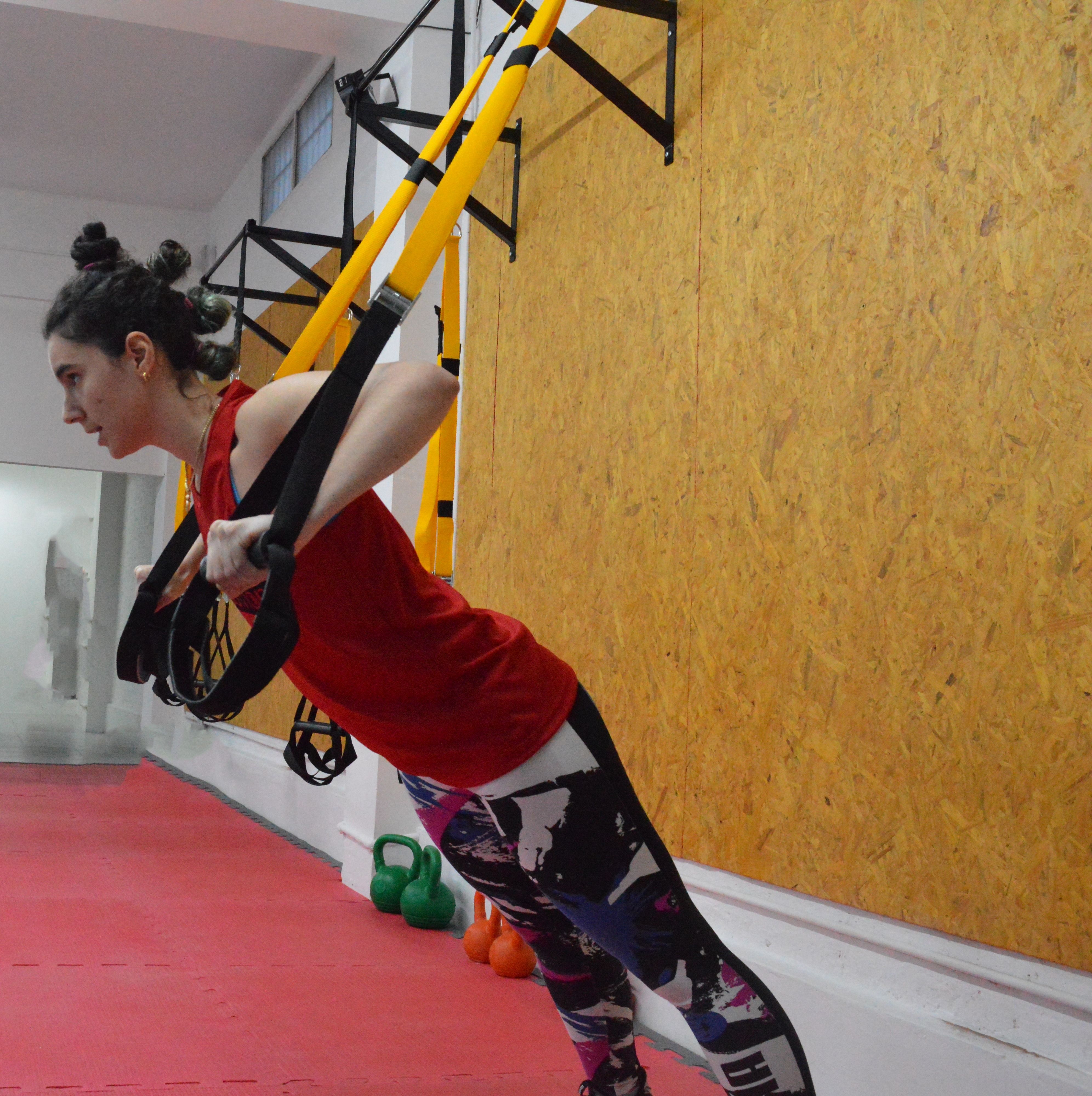 La posibilidad de entrenar en suspensión, con cintas rígidas colgadas, permiten un particular entrenamiento, por demás divertido y tonificador.