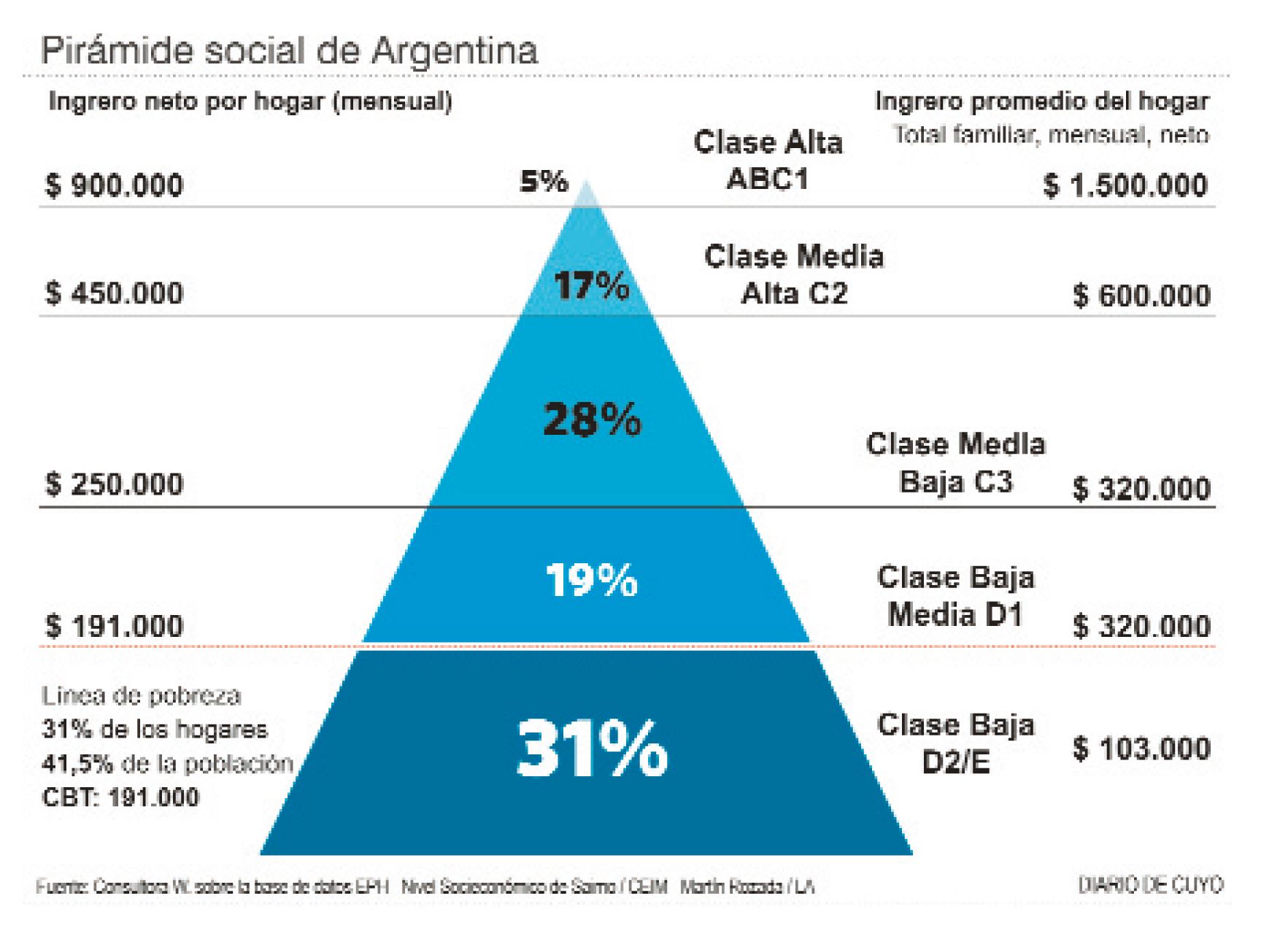 Los productos agroindustriales gozan de un gran prestigio nacional e incluso internacional, pero, sacarlos de gira, este año parece más difícil que otros. Así lo confirman, por ejemplo, la pirámide social según ingresos y la caída del consumo de alimentos en todo del país por arriba del 8% y hasta el 15% según los centros de consumos y ciudades del país.