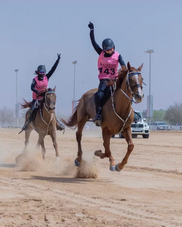 Para ellos debo pesar 50kg para poder correr las carreras nacionales de emiratos, pero en las internacionales entre montura y mi peso debo pesar 75kg. Mis carreras son en Dubái y en Abu Dabi. Algo para destacar en el endurance es que Argentina, Uruguay y Francia son los influyentes más destacados, hay muchos caballos, entrenadores, jinetes y veterinarios argentinos.