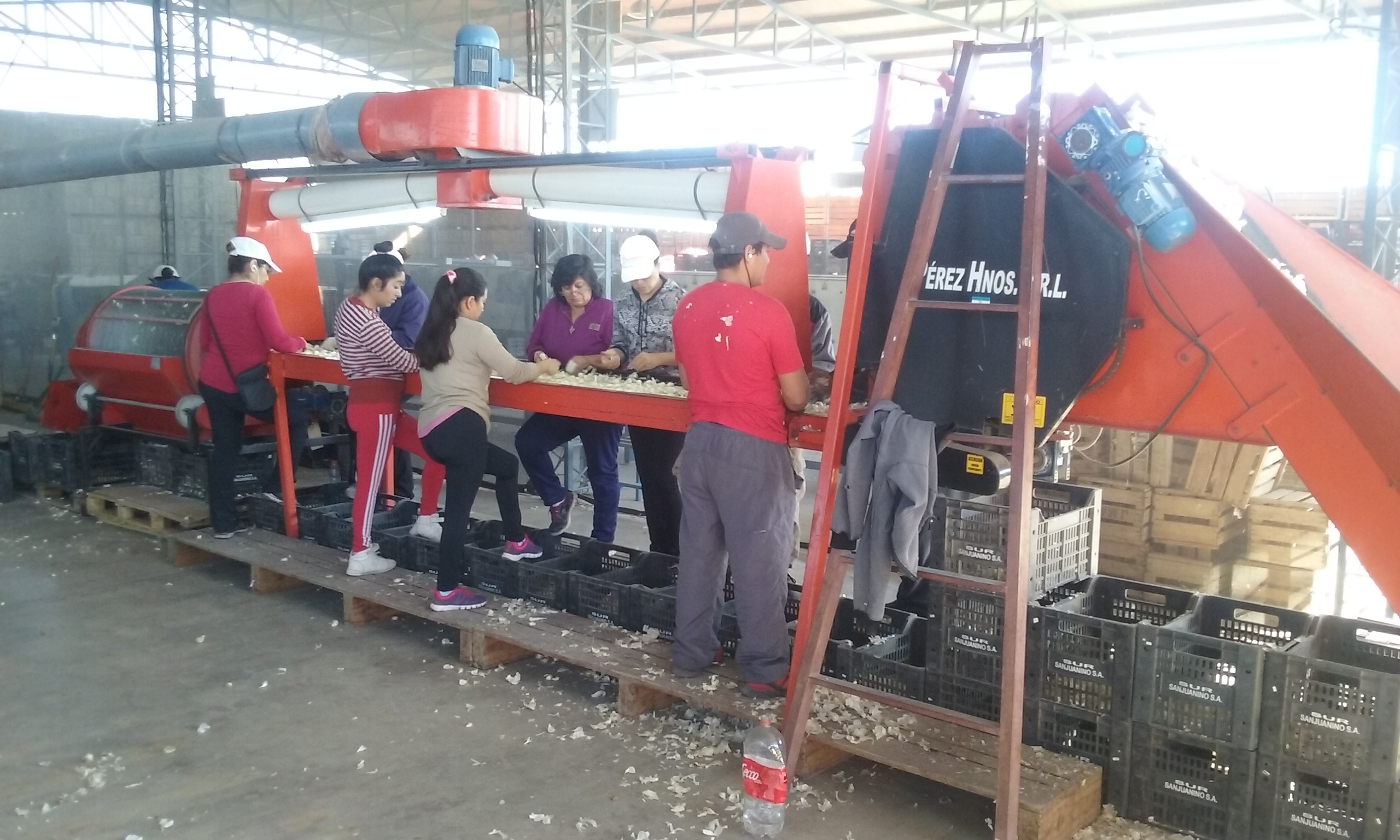 DESGRANANDO. Las máquinas preparan los dientes para la siembra de ajos.