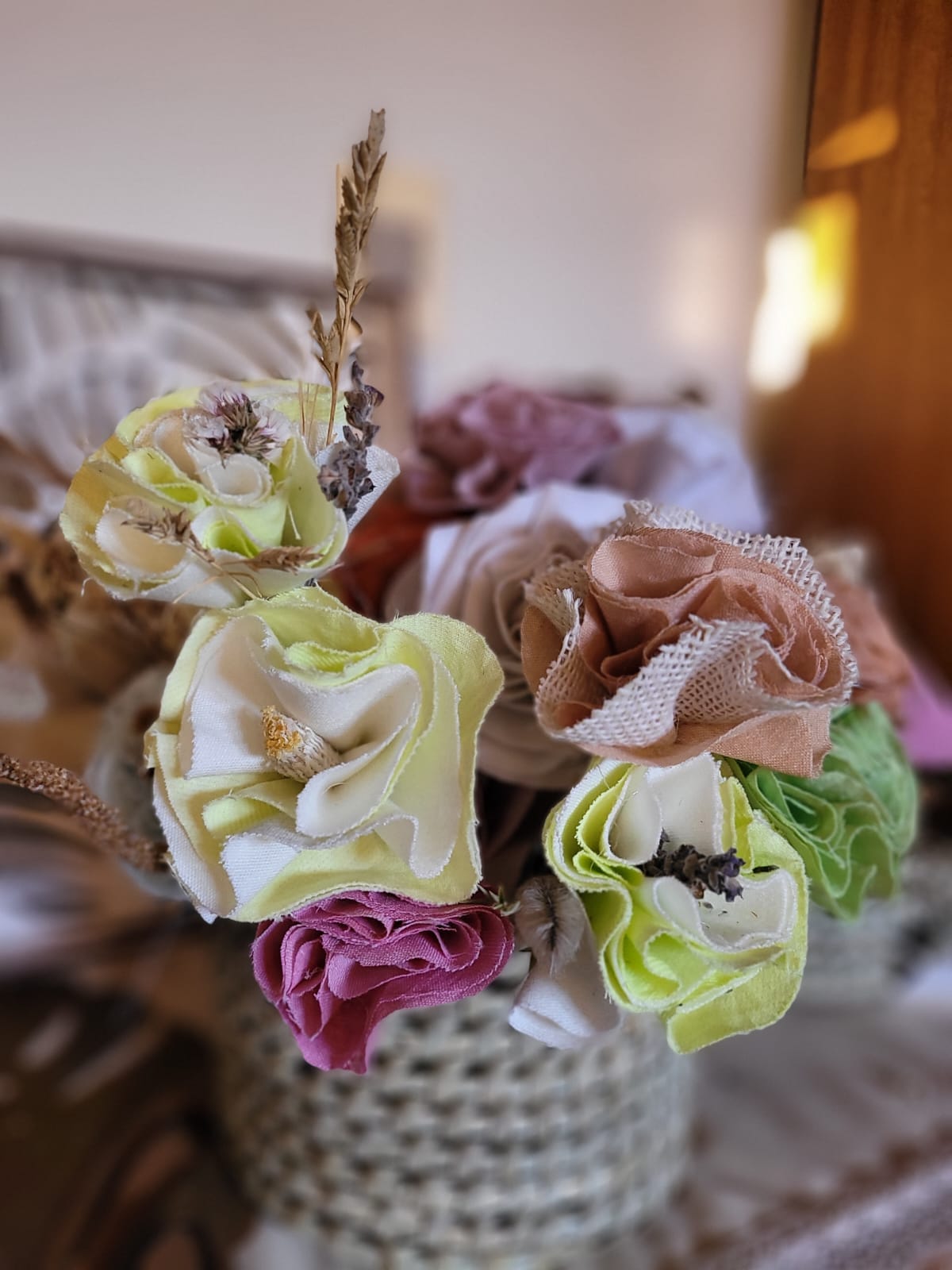Son fabricadas a mano, con telas teñidas con elementos de la naturaleza. El detalle es que se pueden perfumar con aromatizantes de ropa, por ello sirven para decorar cualquier lugar del hogar; ejemplo en baños, dormitorios, como centros de mesa, el precio es desde $800 el ramo.
