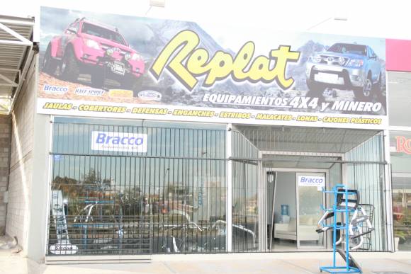 Este dispone de un amplio salón de exposición con una completa oferta de jaulas antivuelcos, cobertores, defensas, enganches, estribos, malacates, lonas, cajones plásticos, deflectores, y todo los accesorios necesarios para camionetas 4×4 y actividad minera.