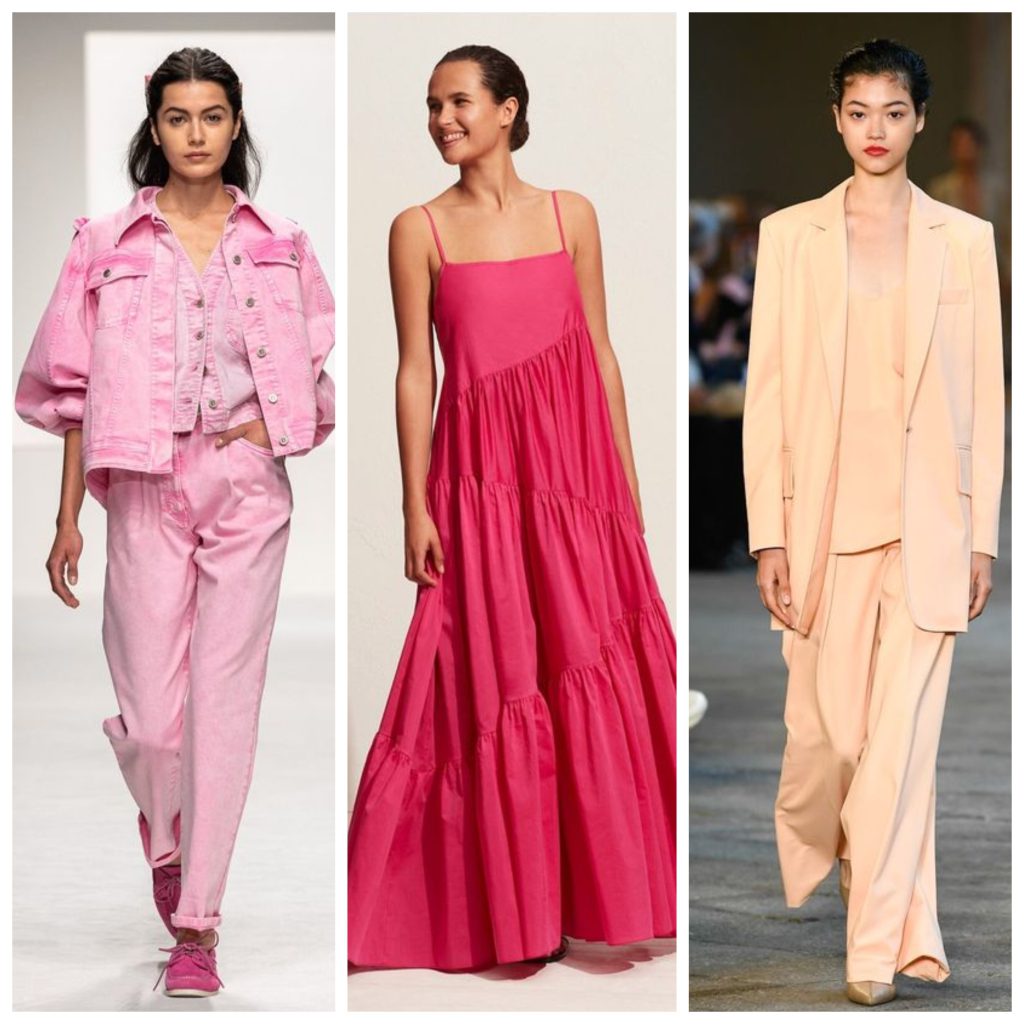 Los tonos rosados de moda para el verano incluyen el Beetroot Purple, Crystal Rose y Coral Rose. El Beetroot Purple, descrito por Pantone como un "fucsia envalentonado", refleja la vitalidad de los frutos de la naturaleza. Por su parte, el Coral Rose evoluciona, mostrando una dirección más sutil pero igualmente cautivadora, se presenta como una opción más cálida y nutritiva. Crystal Rose transmite un romance moderno con su apariencia suave. Este tono se destaca tanto en prendas ajustadas como en diseños estructurales, siendo el símbolo del amor, la crianza y el autocuidado en este mundo pospandémico.