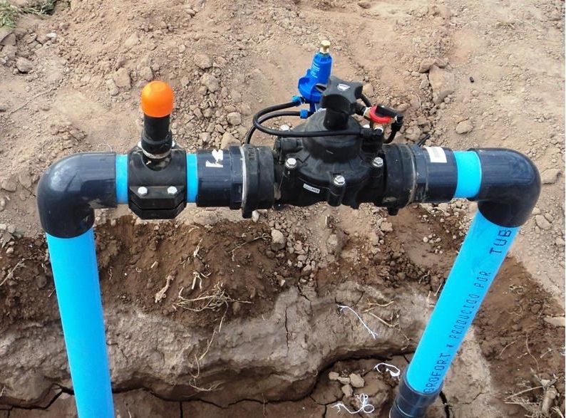 El zanjeo se realiza para tuberías principales entre 0,80 y1,50 metros y las tuberías secundarias entre 0,50-0,70 centímetros. Para la instalación para tuberías 110 mm o mayor se requieren juntas de goma y para diámetros 90 mm o menor el pegamento para PVC .Para instalaciones terciarias se requiere mechas de distintos diámetros perforación del caño a 16 mm conector inicial de 16 mm y líneas en terciarias cada 70 centímetros. Los laterales de riego son de polietileno: Flexible y resistente al sol (UV) Diámetros: 16 y 20 mm, los más usados.