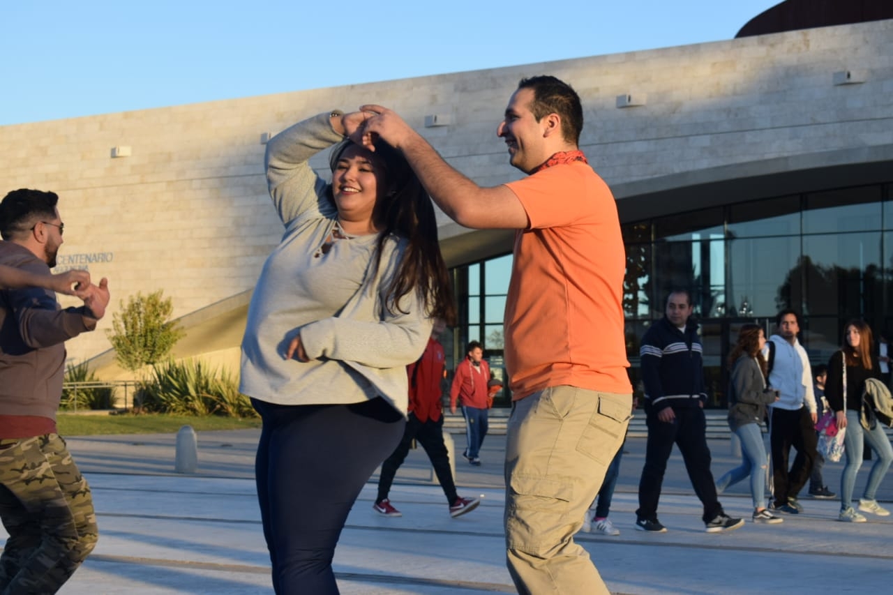 "He tenido la posibilidad de ir a tomar cursos a distintas provincias argentinas y en todas, hay espacios públicos donde la gente tiene un día estipulado que se reúne a bailar, sin tener que pagar una entrada ni invertir más dinero, ya que esta es una actividad que se hace a pulmón y que requiere de algunos ahorritos para pagar viajes, competencias, trajes, zapatos especiales, cursos, etc, etc, etc. Tener un espacio público la convierte en una propuesta libre y abierta para disfrutar de lo que se hace. Esto ocurre en Córdoba, en Mendoza, en Mar del Plata. Pero aquí no. Hasta que un fin de semana yo estaba aburrida y se me ocurrió hacer una convocatoria a través de redes sociales a los bailarines que conozco de diferentes academias para juntarnos a bailar. La propuesta era y sigue siendo sencilla: mate, parlante, buena onda y solo ganas de bailar. La respuesta fue un éxito. A partir de ese domingo sólo paramos por una inclemencia climática y porque un fin de semana el parlante no estaba disponible y no teníamos como reemplazarlo”, cuenta Silvia y agradece a Juan, Ariel, María Inés y Jesús que son quienes desinteresadamente han prestado todos estos meses los aparatos para tener música.