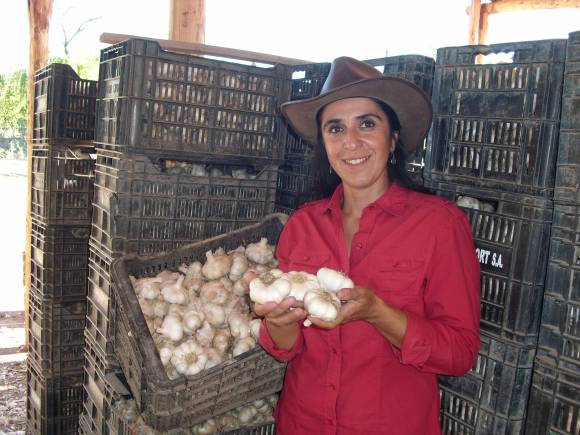 Se trata de Marisol Sánchez, una exitosa instrumentista quirúrgica que eligió hace unos años retomar la profesión chacarera de su padre y ahora es una reconocida productora de ajos en la provincia en el departamento cordillerano de Calingasta.
