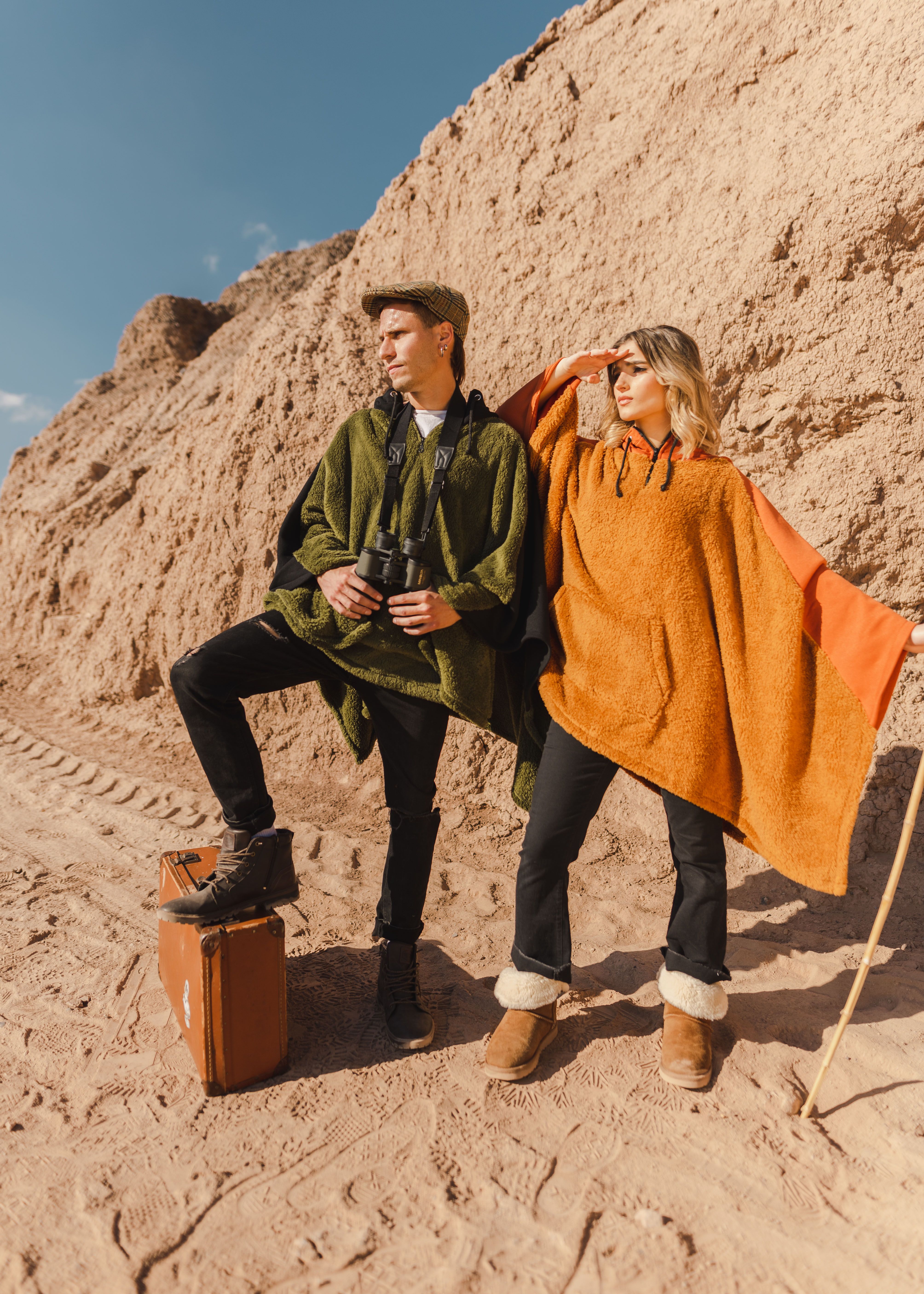 Tres maniquíes fueron el soporte para los inicios de la moldería que le permitieron trazar su sueño. La primera colección, la fundacional, fue una de sastrería o artesanal, como le gusta llamarla a la diseñadora. "Eran ponchos semiexclusivos fusionados con tipologías y textiles de sastrería, combinados con tejidos artesanales. Resultaron ponchos, sobretodo-ponchos, tapados-ponchos, ruanas-poncho, con terminaciones, cuellos y otros detalles de sastrería. Esos ponchos se volaron y me dieron el ímpetu de seguir creando. Luego siguieron la línea urbana que fusiona el poncho con la tipología del ready-to-wear (listo para usar), que son prendas de uso casual o diario, versátiles, para usar de día o de noche según te pongas unos stiletos o unas zapatillas. También hice una línea deportiva, más tipo buzos o suéter ponchos que son gigantes o tienen capuchas, en base a géneros, avios (estos son los cierres, botones, cintas o tiras que permiten ajustar, cerrar o abrir el abrigo) y terminaciones propias de lo deportivo. Más recientemente hice la de playa, la de niños (que es la única que tiene talles del 2 al 12 y son ponchitos de abrigo y salidas de baño) y la línea corporativa a pedido de las marcas que se coparon con los ponchos para sus promociones", detalla Majo, que tiene un amplio abanico de textiles a su gusto para hacer los ponchos: desde lanas, lanillas, algodones, polar, toalla, paños, hasta telas tejidas al telar. También tiene telas estampadas que ella misma diseña, como además bordados y serigrafiados artesanales. Por ejemplo la edición de ponchos de verano para niños estampó telas en batik pero también, inspirada en la flora y fauna de San Juan con dibujos de guanacos, retortuños, la tierra, el río, montañas, jarilla y el sol.