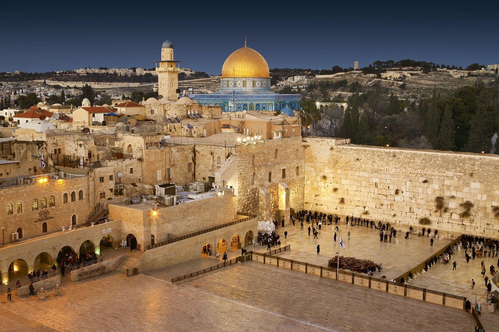 Jersualem y su convivencia religiosa con el Muro de los Lamentos, las principales mezquitas y el Santo Sepulcro.