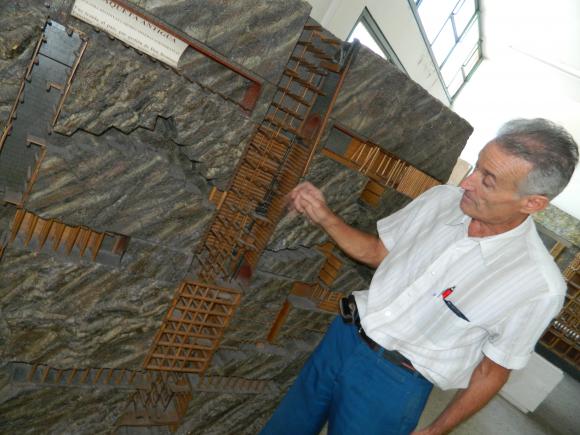 La nota inició con la maqueta de Sarmiento, una pieza histórica donada por el prócer en 1864 que muestra un método de explotación minera mediante sistema de pique y excavación en gradas. La reliquia se encuentra en el sector museo del Instituto de Investigaciones Mineras de la Facultad de Ingeniería de la UNSJ, en el primer piso. En el mismo sector y también reflejando diferentes métodos de explotación, la acompañan varias maquetas “a pedido” que entre los 60´ y 70´ hiciera el artista plástico Julián Tornambé. Un hallazgo insospechado que pasó del prócer al artista en un intento de reconstruir la historia de tan valioso legado.