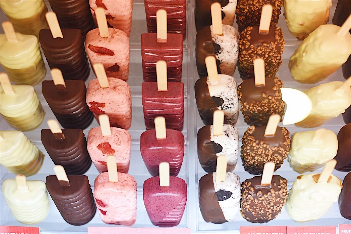 Se pueden comprar de manera individual (aunque están preparando la promoción en cajas para llevar). Su peso ronda entre los 95 y los 130 gramos (dependiendo del sabor) y todos, tienen un valor de $65. Hay 19 opciones para elegir, entre las que se destacan, el de dulce de leche con baño de chocolate y crocante o con baño de chocolate blanco, nutella, óreo, pistacho de campo, etiqueta negra, sorbete de chocolate (no tiene leche por lo cual es ideal para los pacientes alérgicos), maracuyá o frutilla y sorbete de chocolate (también sin leche), maracuyá y palta, frutos del bosque, naranja y frutilla, limón y frutilla y cielo.