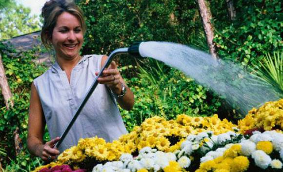 Si se cuenta con canteros, es conveniente colocar toberas que rieguen en forma de lluvia por encima de las plantas. Debe tenerse en cuenta que cuanto más se acerca el verano, las plantas adquieren mayor tamaño y el riego será menor a causa de que la humedad se mantiene más. Otro método es utilizar una manguera de goteo colocada en forma de serpentina entre las plantas. Para pequeños espacios (10 a 30m2), éste es el mejor consejo.