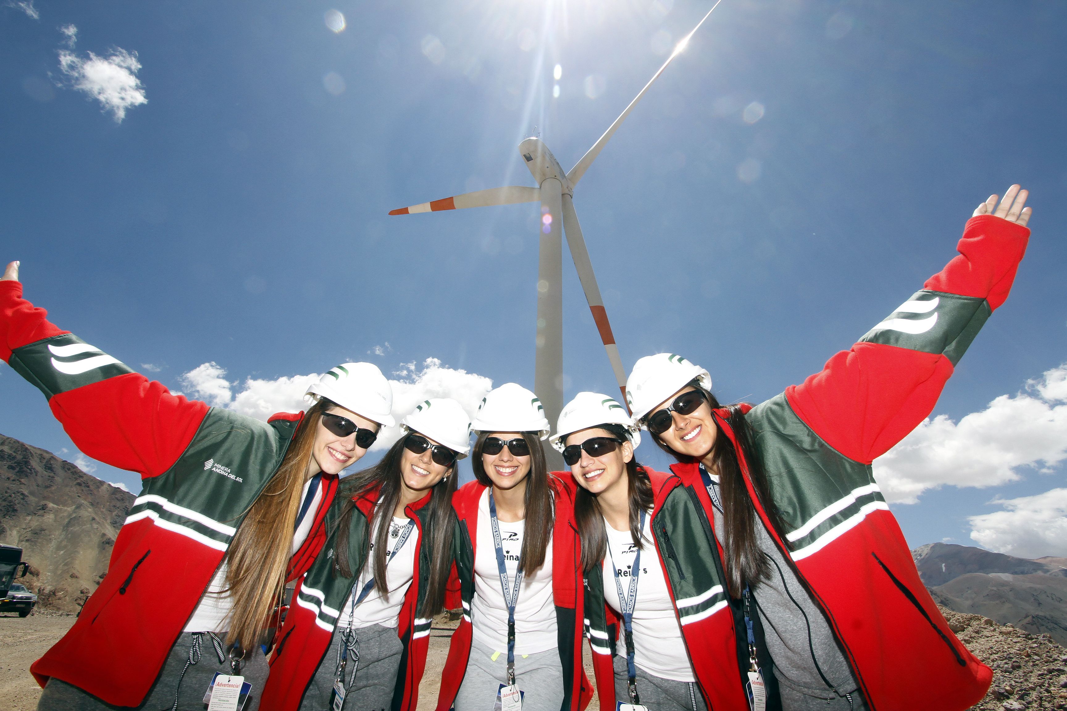 Emoción. Gran admiración generó entre las candidatas el enorme generador eólico ubicado en la mina Veladero y motivó un gran número de fotos entre las jóvenes.