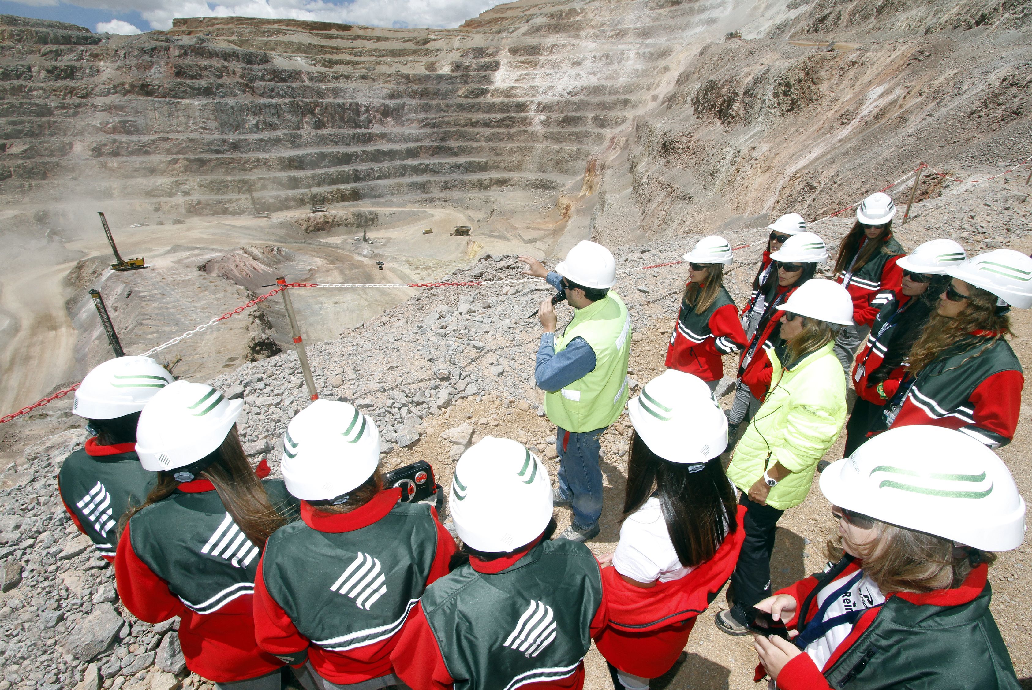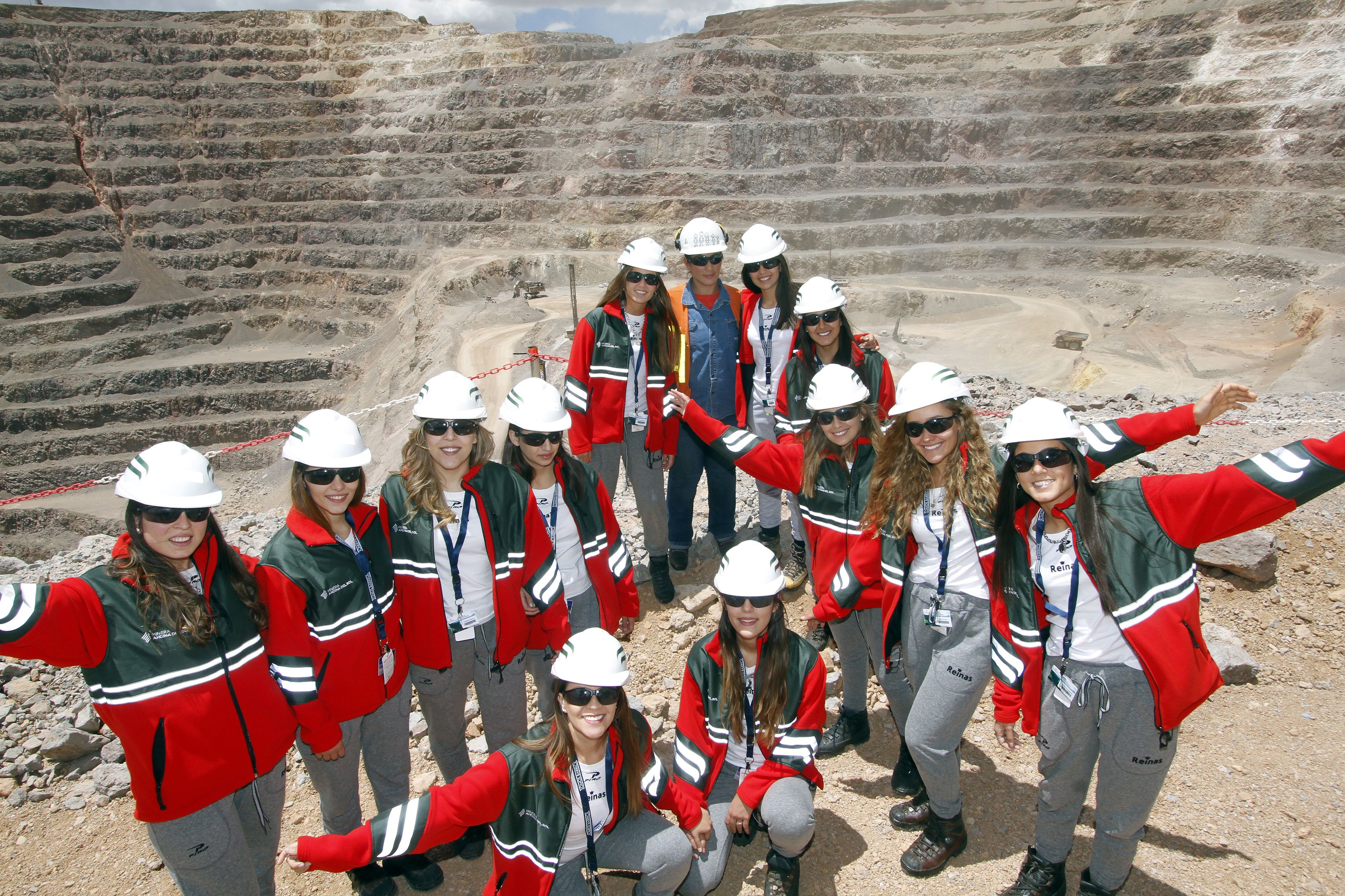 Atentas. Las candidatas a reina escucharon atentamente a los operarios de la mina mientras explicaban el proceso de extracción en el open pit.
