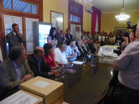 En un año de parabienes para San Juan, se siguen recibiendo las máximas autoridades nacionales en áreas como la agricultura, la ganadería y la industria. Desde construcciones, apoyo en maquinarias, líneas diversas de créditos y subsidios, proyectos y todo tipo de medida para apoyar las actividades vienen muy bien. Esta semana el Servicio Nacional de Sanidad y Calidad Agroalimentaria (Senasa) realizó en la sala Ricardo Colombo de la Casa de Gobierno de San Juan, la apertura de sobres de la licitación para la construcción del nuevo edificio que albergará la sede de su Centro Regional Cuyo. Estuvieron Jorge Amaya, presidente del Senasa, José Luis Gioja, Carla Campos Bilbao, secretaria de Desarrollo Rural y Agricultura Familiar de la Nación y muchos funcionarios más.