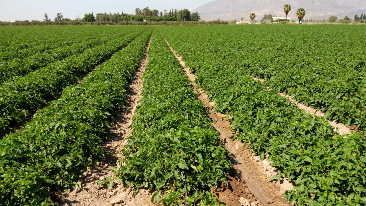 La temporada 2019/20 de tomate "fabriquero" arranca con las complicaciones de los vientos fuertes, fue la primavera más ventosa de muchos años, y esto trae problemas posteriores de hongos de cuello en las plantas, de carácter vascular. Son lotes de fechas de transplante temprano, sobre la clásica semana 36, y la 37. Se modifica el desenvolvimiento normal de los cultivos y se traduce en menos kilos al final. Esto es un inconveniente.