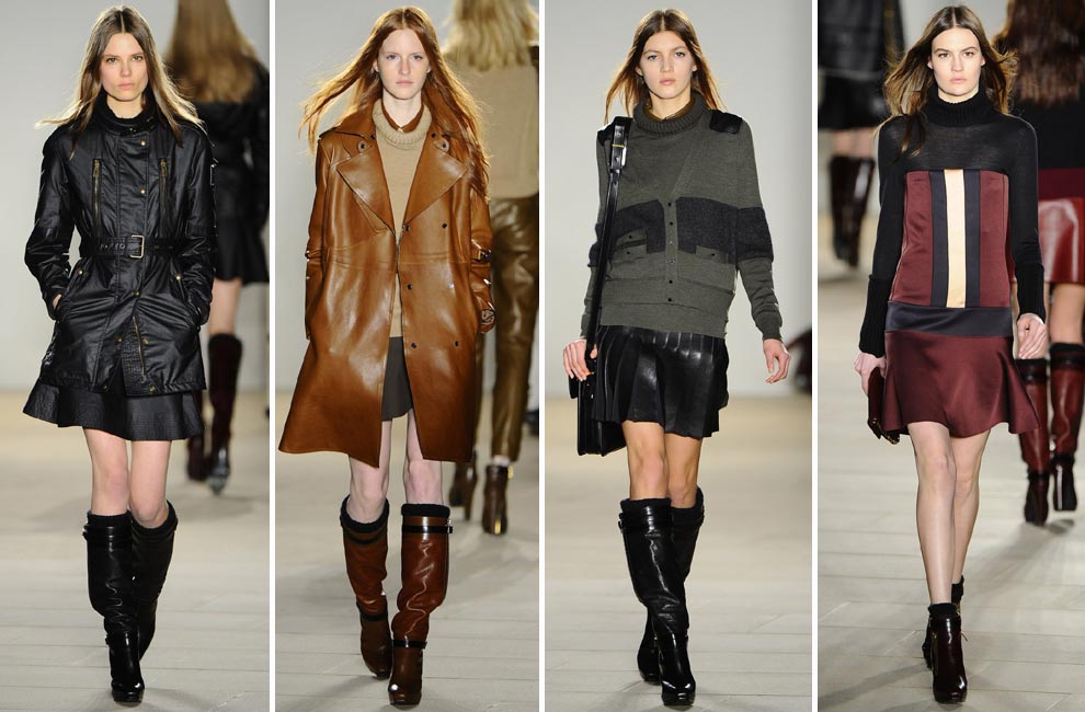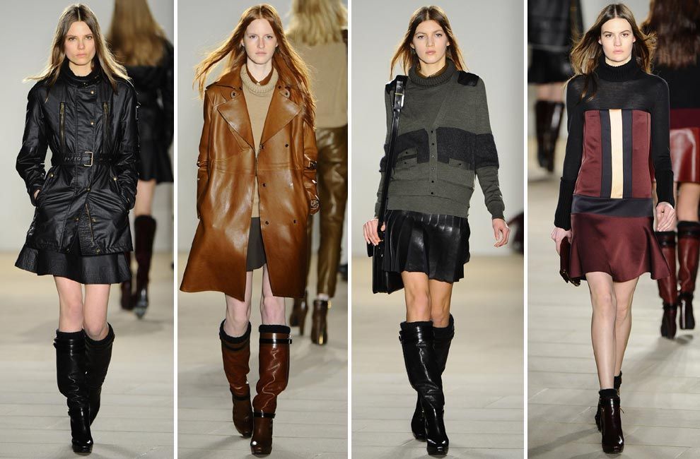 Tapados de cuero largos hasta los talones o sacos cortos de cuero. Con un brillo más o menos apagado, con solapas más o menos pronunciadas marcado aire de finales de los 90.