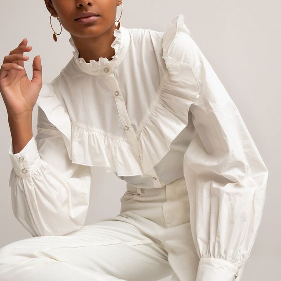 Directamente desde la corte de Victoria I de Inglaterra, las camisas de estilo victoriano han llegado para quedarse. Estas se caracterizan por estar engalanadas con lazadas y volantes. Aunque están teñidas de diferentes colores y estampados, la reina siempre será la camisa blanca.