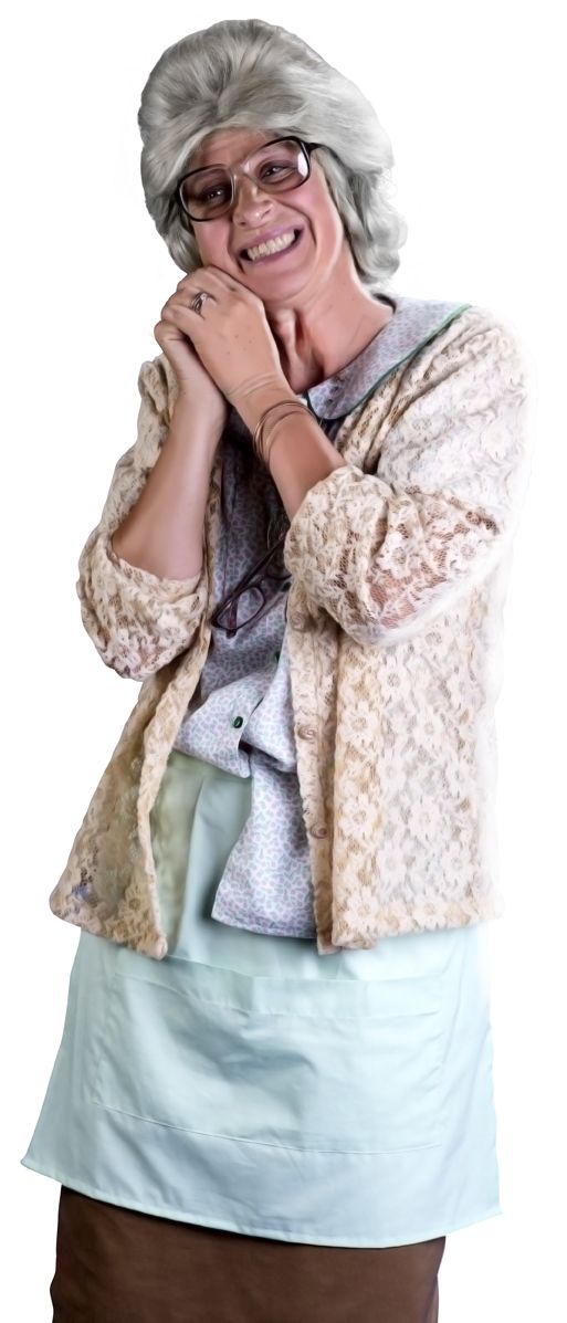 "Es un personaje encantador. Para componerlo busqué fotos de mi mamá, mi abuelita y mis tías que me inspiraron", cuenta Patricia quien de muy joven se fue a cumplir deseos por el mundo, con su teatro a cuestas, pasando por varios países donde cosechó amistades, saberes y profesiones múltiples. Cada tanto, vuelve a San Juan, para reinventar aquello que comenzó a los 5 años haciendo declamación y arte escénico y danza clásica.