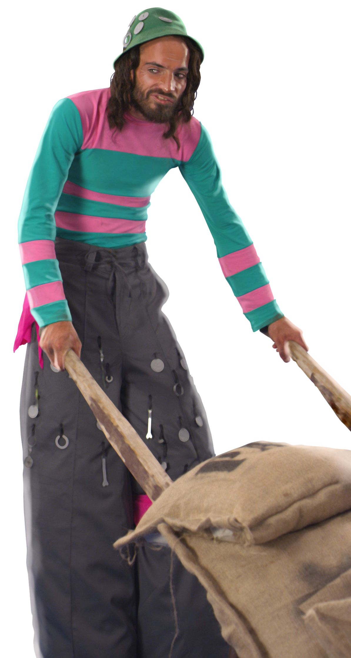 A Andrés Correa le tocó hacer de uno de los personajes más fantasiosos y más misteriosos de este espectáculo. Su Juan Carretilla, se asemeja a un vendedor ambulante de pasas, muy alto (lo que lo obliga a salir en cada una de las escenas subido a zancos de 40 centímetros) y que tiene un idioma muy particular: la única palabra que pronuncia y con la que se comunica es "pasa". Solo la abuela lo entiende y hace las veces de traductora para los niños que no saben si tenerle miedo o cariño, porque alguna vez, en esta historia, será quien les abra el camino a la aventura.