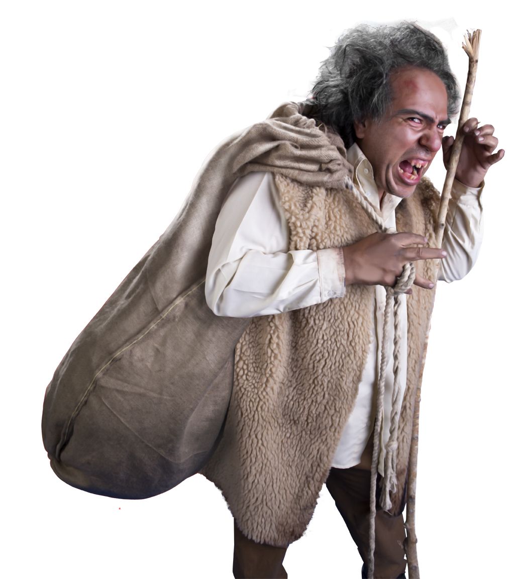 A diferencia del resto de los actores, Pablo Flores Tulián ya era adulto cuando empezó a hacer teatro. Tenía casi 30 años cuando dio sus primeros pasos en el escenario con el grupo de Estudiantes de Arquitectura y desde entonces no dejó nunca más de actuar y hacer talleres. Quizás por eso y por su tamaño es que lo vieron con solvencia para interpretar al rudo y terrorífico Hombre de la Bolsa, que por momentos es una especie de monstruo pero por otros, es el actor de la pegadiza publicidad del vino Resero que hizo famoso a San Juan. Este Viejo de la Bolsa no sólo asusta a los niños sino que aterroriza a la propia Graciela Primera, la reina.