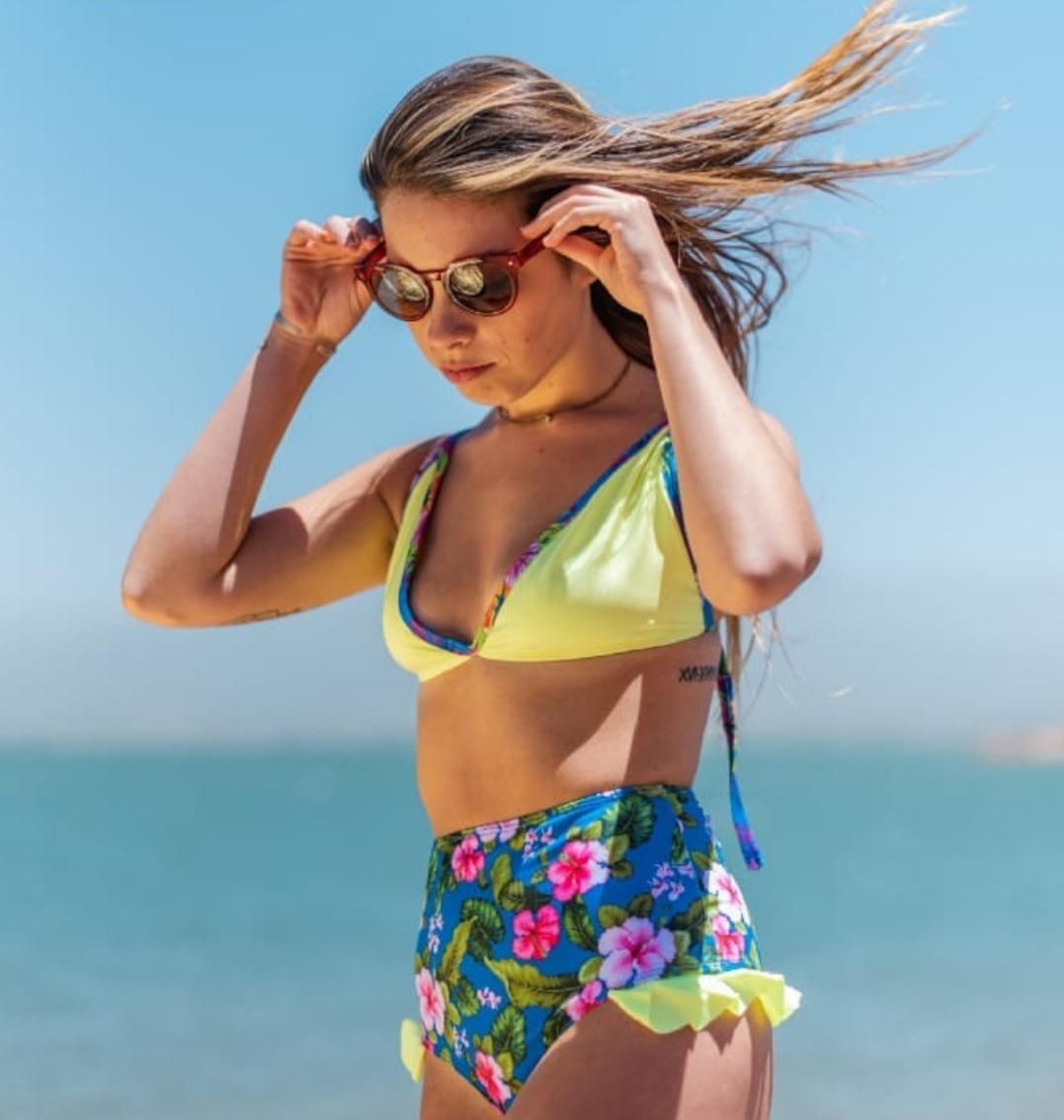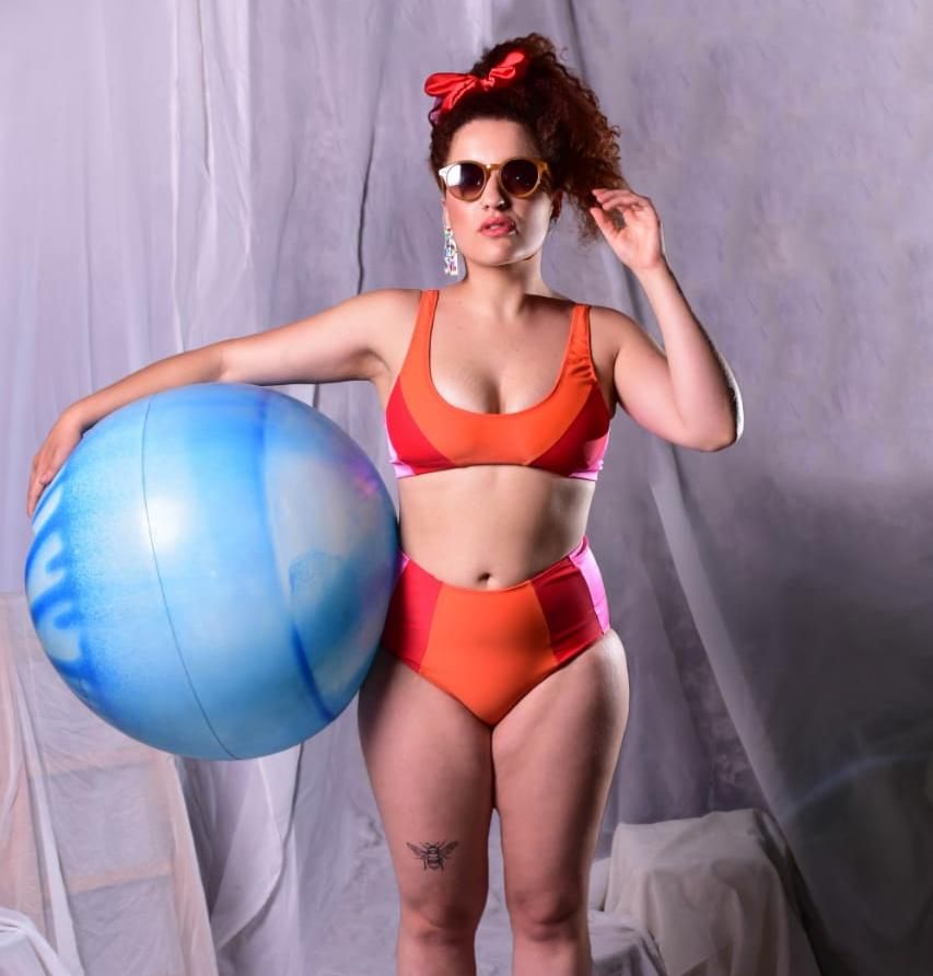 Justamente en el 2020 dio ese paso que a su vez, vino acompañado por la impresión del estampado de su propia tela con dibujos que remiten a la femeneidad y a la naturaleza. Y como una cosa trae a la otra, los corpiños y bombachas se transformaron también en mallas.